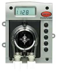The Brodi Automated Peristaltic Liquid Pump is a precision-engineered peristaltic pump designed for industrial applications, It features a time-activated operation and water-resistant properties. It boasts a digital 7-day clock that allows programming of up to 24 events, each with a distinct runtime ranging from 1 second to 20 minutes. The pump operates at a speed of 100 RPM, delivering a dosing rate of 5 ounces per minute. Programming is conveniently performed via the front-facing 5-key keypad and display screen. The unit is versatile, available in 115 VAC, 230 VAC.